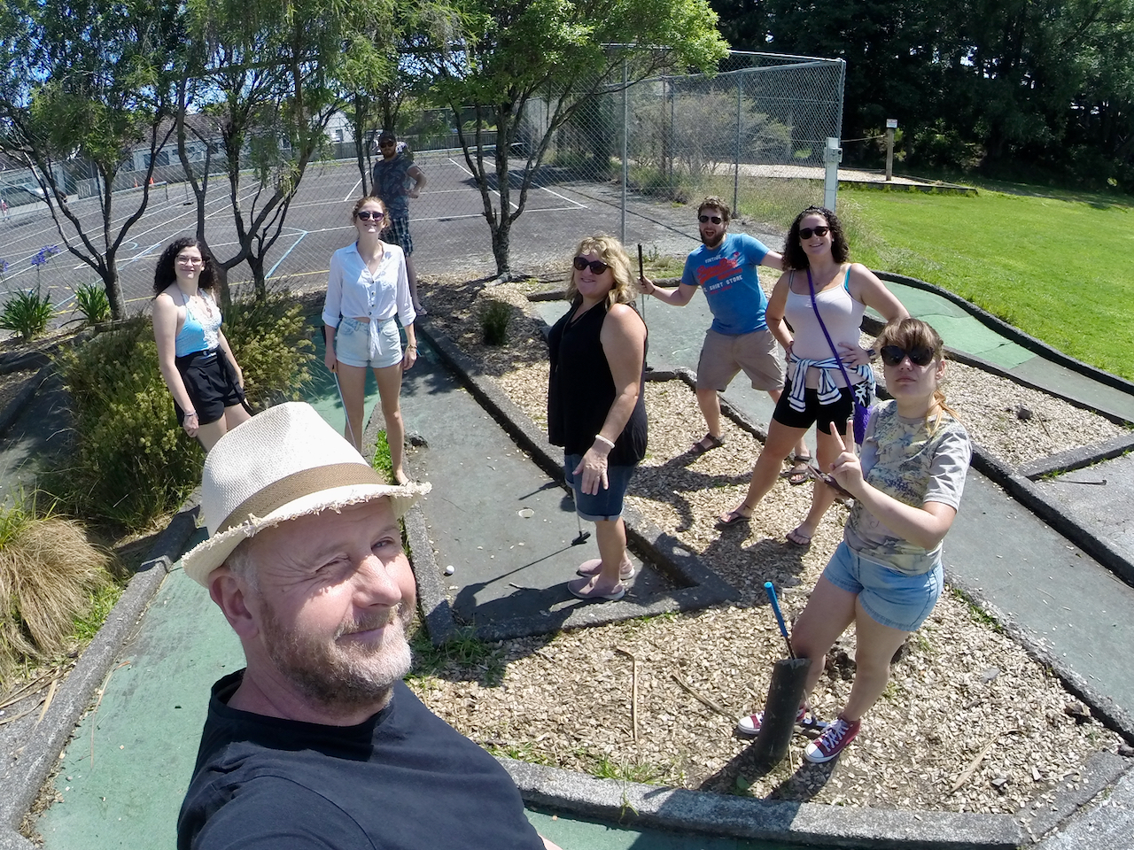 Katy had decided that surfing should be on the morning agenda. Both Micheal and Rachel had far more enthusiasm for this than I did so I happily stayed back at camp whilst they headed for the waves. Sadly they retuned dry 20 minutes later as it turned out the waves at the beach were non-existent and the surf shop wasn’t open. This was fine though as we had located a mini golf site at the camp and went fo a casual round of golfing fun. The usual rule of where it lies [Definition: in mini golf it is proper to play the ball wherever it lies (ends up). This includes out of bounds areas if you have been unlucky enough to go too wrong]. Given there were seven of us we only managed 4 disastrous, argumentative holes before we had to make our speedy way to find a camping spot in Wellington.